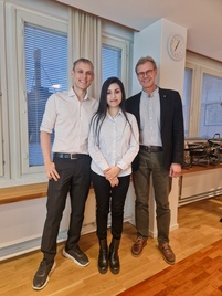 ![]() LK Tasnuva Rahman vei voiton Angiologiayhdistyksen Progress Report- tilaisuudessa 2.10. Hänen tutkimuksensa aiheena oli vena sphena magnan laserablaatiota ja avoleikkausta vertaileva kustannusvaikuttavuusanalyysi. Kakkospalkinnon sai radiologi Aleksi Tarkkonen tutkimusaiheellaan "Optisen koherenssitomoangiografian löydökset ja niiden yhteys aivojen pienten suonten tautiin tyypin 1 diabetesta sairastavilla". Kuvassa myös puheenjohtajamme Veli-Pekka Harjola. Onneksi olkoon palkinnonsaajille, suurkiitos esiintyjille ja kiitos kaikille osallistujille! |